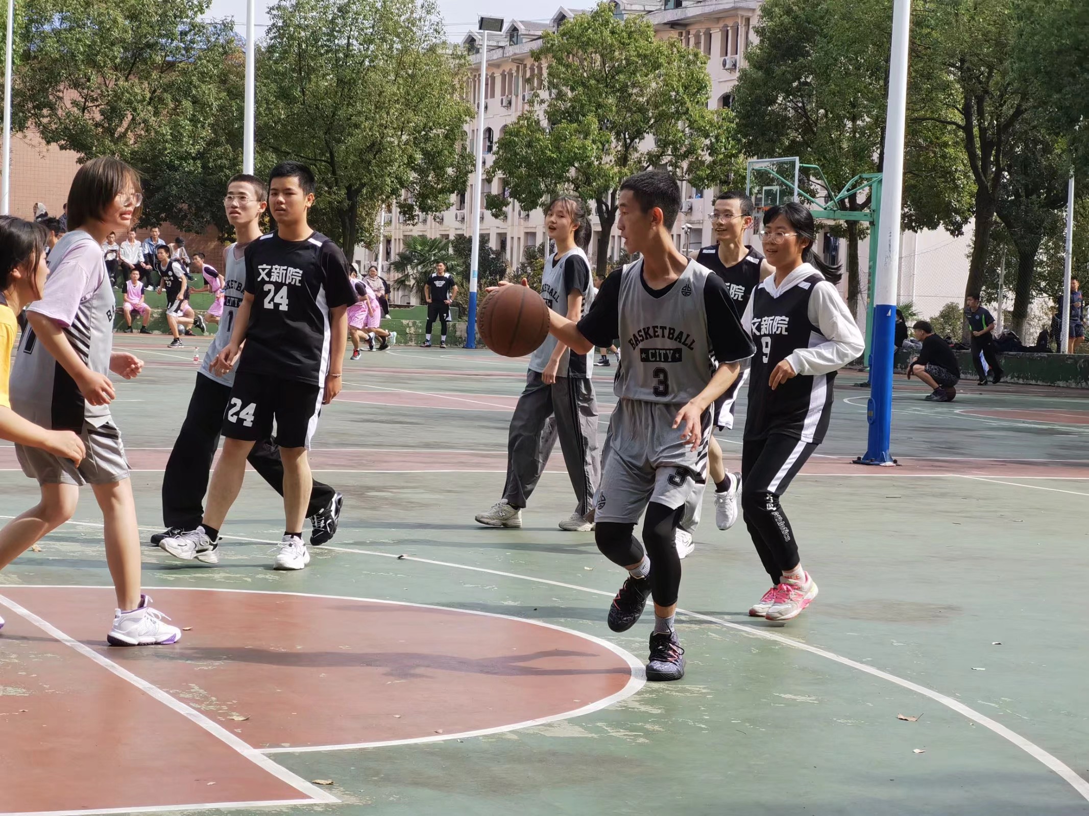 (文新通讯员:曾锦威 王岩松)阳光明媚,微风不燥。11月4日中午,sunbet申搏“3+2”篮球赛在南苑篮球场继续火热开打。对战双方是20级新闻一班、20级中文二班。经过几番激烈角逐,20级中文二班以82:67的比分夺得胜利。