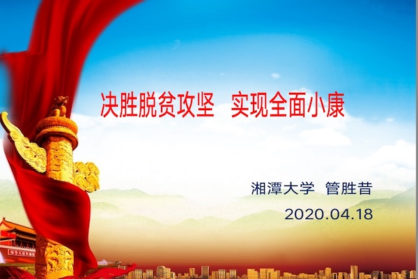 管老师从“小康”一词的来源说起,讲述我国全面建成小康社会的目标确立和内涵演变过程,梳理了扶贫开发从县到村再到户、从温饱到小康再到全面小康、从市场反贫到政府反贫再到全社会反贫的发展进程,强调了十八大以来,党领导全国人民脱贫攻坚取得的显著成就,以及全党、全国人民今年决胜脱贫攻坚,实现全面小康的信心和决心。