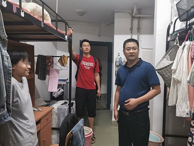 寝室八个多月未入住,领导和老师们首先重点查看了低楼层宿舍的卫生环境。党委书记赵勐与大家深入交谈,亲切地询问了同学们的返校情况,多次强调在疫情期间需要注意的事项,鼓励同学们有困难要及时向老师、辅导员反映,并表示老师会竭力帮助同学们解决问题。
