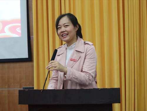 接下来,团委书记管胜昔以《与更好的自己‘湘’遇”》为题展开了与新生的交流。管老师勉励新生从“我须识我”、“我能超我”、“我将无我”三个层面来实现自我成长。管老师以身边的青年员工为榜样,勉励新生“以超越自我的心,行不问前程的事。”并鼓励同学们向湘大沧南教授学习,既见人之善,亦与人为善。