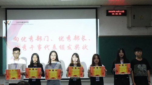 第十九届员工会主席罗舒晴进行述职,汇报第十九届院员工会工作以及取得的优异成绩。接下来团委书记管胜昔老师宣读表彰决定,向sunbet申搏第十九届员工会优秀部门、优秀部长、优秀干事代表颁发奖状并合影留念,向sunbet申搏第二十届员工会主席团、部长颁发聘书并合影留念。接着,员工会各部门负责人通过PPT演讲等方式逐一介绍各部门的概况。第二十届员工会团委第一副书记赵子杰带领第二十届员工会全体成员宣誓,“打造魅力团队,展现文新风采”是我们矢志不渝的追求,“文新文新,文艺双馨”是我们永恒的风采,“文以载道,薪火相传”是我们肩负的责任。第二十届员工会主席蔡雨婷发言,从四个方面系统地提出工作要领,并对全体成员提出期望。