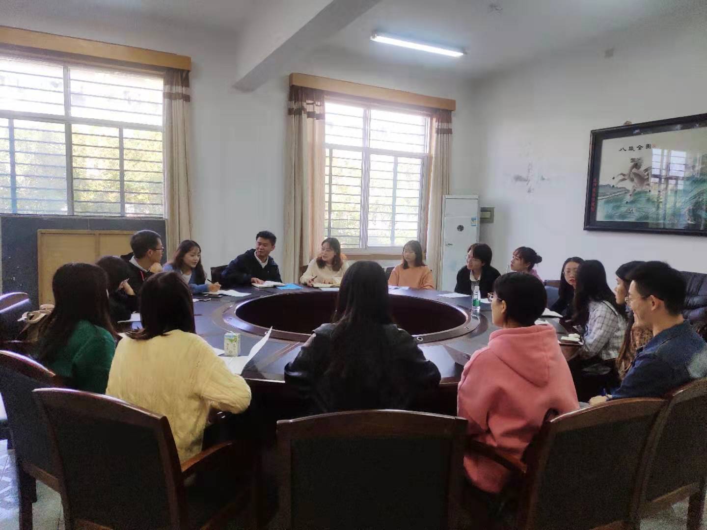 (通讯员 贺勇 张文苑)11月15日中午12:30,文学与新闻学院研究生团总支、研究生会在第三教学楼316会议室召开本学期首次例会。会议对开学以来研会工作进行总结,商议工作中出现的问题,并对下一阶段的工作进行安排。研究生辅导员林瑜老师出席本次会议,第十九届研究生团总支、研究生会全体成员与会。