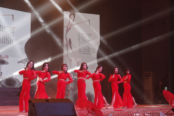 时间退回到大清朝,宫廷里也发生过很多有趣的故事。19级新闻1班同学们演绎《朱墙往事》,将宫斗与现代元素结合。鲜明的角色对比,错综复杂的人物关系,巴啦啦小魔仙的闪亮登场,太极和一剪梅的片段,可谓是笑点多多,全场笑声不断。冲破时间的牢笼,《活着1937》通过舞蹈艺术揭开曾经伤痛的历史,讲述抗日战争时期中国女性毅然扛起民族救亡的大旗,与侵华日军斗争到底的故事。演员们通过眼神向观众传递了家国仇恨、誓死拼命的决心,展示了在那段黑暗的日子里,巾帼英雄用他们的柔弱之躯抵挡住炮火纷飞保护一对母子的悲壮故事。台下观众被故事感染,热泪盈眶。