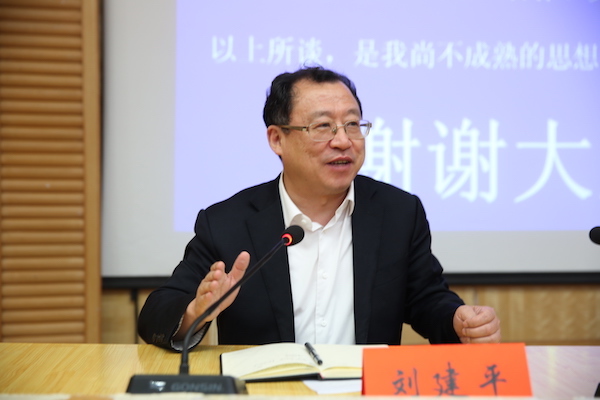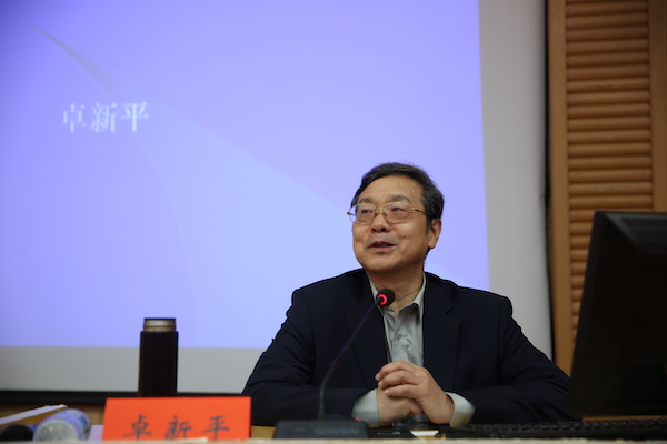 主持人刘建平教授介绍主讲嘉宾卓新平后,全体人员以热烈掌声欢迎卓新平研究员讲话。“我是怀着激动的心情来到湘大的……我感谢湘大给了我立志的机会。”卓新平研究员谈起自己与湘大的渊源,并分享了自己波折而又新奇的异国求学经历,从而引入本次论坛的主题——“中外思想文化特色比较”。