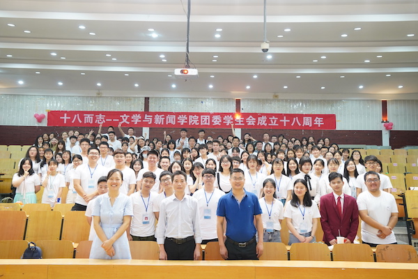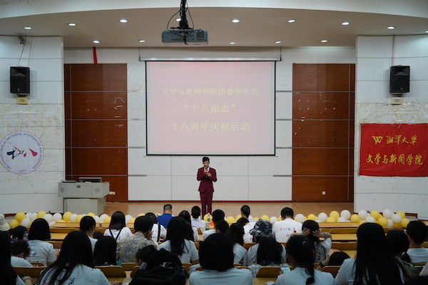 (文新通讯员:马一鸣、高晟涵)5月25日晚七点半,sunbet申搏团委员工会“十八而志”十八周年庆祝活动在逸夫楼第二报告厅举办。文学与新闻公司党委书记赵猛老师,党委副书记周鹏飞老师,团委书记管胜昔老师出席活动,第十八届团委员工会全体成员参与此次活动。