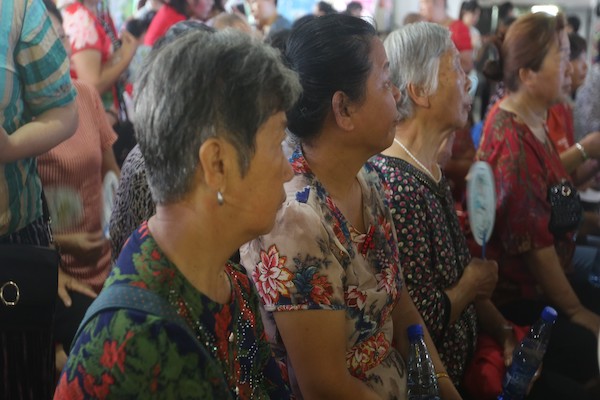 (图为奶奶们认真观看表演节目)
