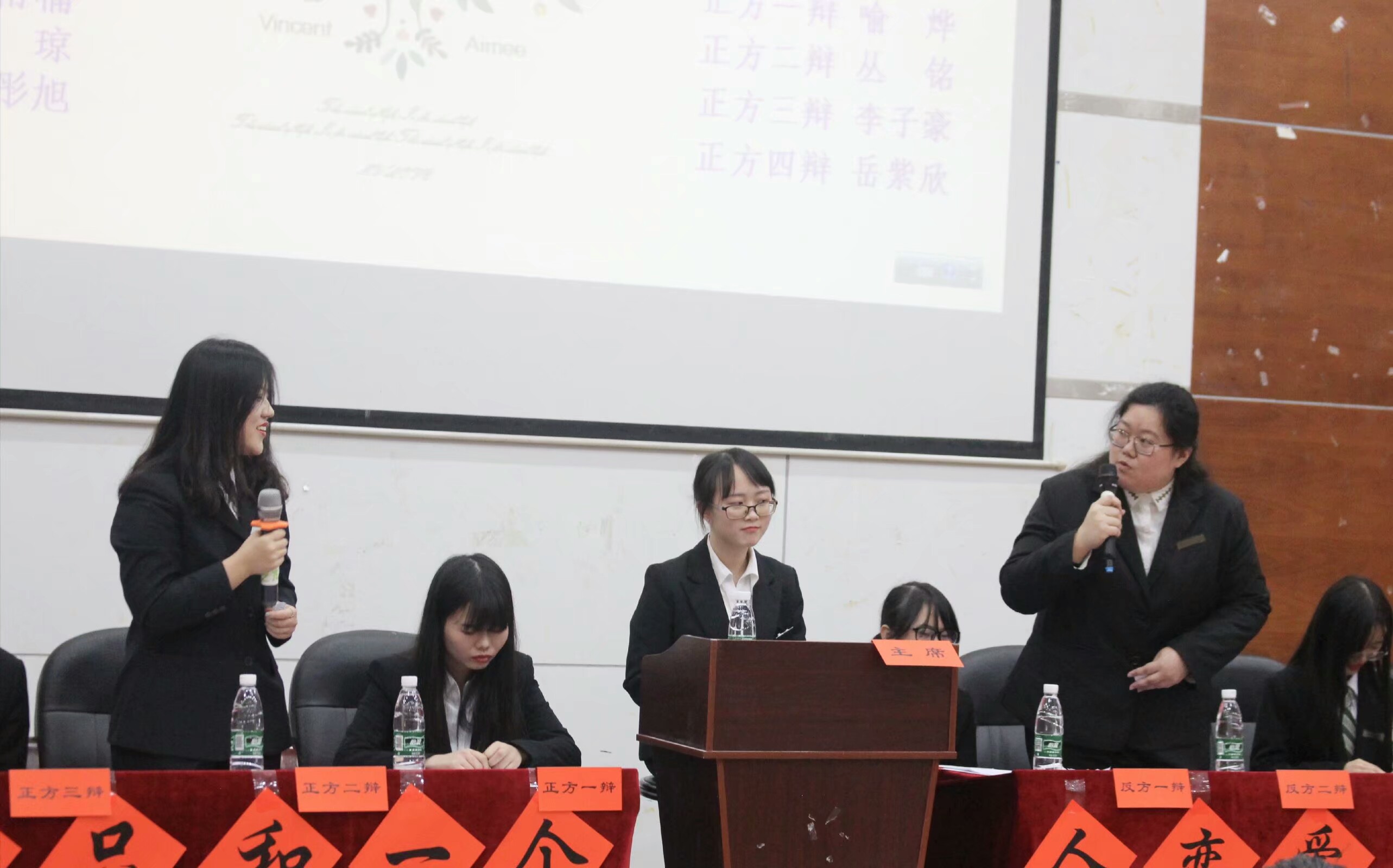 “五!四!三!二!一!” 随着开场的集体高声倒数五秒,第十七届“文心杯”新生辩论赛决赛暨闭幕式拉开了序幕。出席本次新生辩论赛暨闭幕式的嘉宾有:sunbet申搏学工办张姮姮老师,sunbet申搏第十八届团委员工会主席团成员及各部部长和各院学习部部长。到场的评委有:土木工程与力学公司辩论队领队肖依林学长,外国语公司辩论队领队李诗梦学姐,碧泉书院辩论队领队付景怡学姐,兴湘公司辩论队领队张艺龙学长,机械工程公司辩论队领队贺嘉倩学姐,商公司辩论队领队焦宇凡学长,马克思主义公司辩论队队长柴振方学长。本次新生辩论赛决赛暨闭幕式由芮苗博和周子薇主持。
