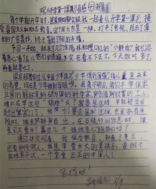(《观< 开学第一课>有感》员工作文,图片来源于网络)