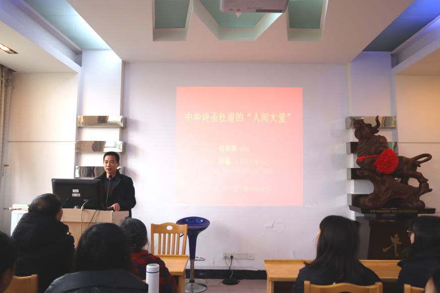 (通讯员 任树芳 冀榕)2018年12月23日上午,来自西南民族大学的祁和晖教授在第三教学楼318会议室开展了以中华诗圣杜甫的“人间大爱”为主题的学术讲座。本次讲座由sunbet申搏文学与新闻公司党委书记赵猛主持,莫立民教授、周建军副教授出席,以及sunbet申搏的部分同学参加。