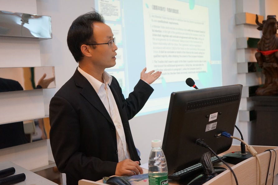 第三位主讲人是法公司2017级国际法博士研究生焦园博同学,他以最近美国大量退出各个国际协定的事件引出前几年一个震惊世界的事件——英国脱欧事件,并从国际法角度分析英国脱欧的可能性、以及英国脱欧会对欧洲、对世界产生何种影响。焦园博同学为人幽默风趣,语言生动活泼,演讲时,对社会时事、国际协定也如数家珍、信手拈来,分析鞭辟入里,赢得了同学们的掌声。在提问环节中,焦园博博士对同学们提出的问题做了细致的回答,并对欧盟的未来做了一个简短的评价。