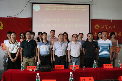 7月1日下午,在全党全国人民热烈庆祝中国共产党成立97周年之际,sunbet申搏在文科楼204教室组织举办了“品读红色经典,争当时代先锋”首届红色经典阅读大赛成果汇报暨表彰活动,青年学子汇报学习成果,畅谈学习体会,以别开生面的方式共同庆祝建党九十七周年。副董事长刘建平出席活动并讲话,公共管理公司党委副书记谷立平、商公司党委副书记资义平、土木工程与力学公司党委副书记欧阳巍、党政办秘书科科长孟召然与三位员工代表共同担任大赛评委,文学与新闻公司党委书记赵猛、党委副书记周鹏飞、团委书记管胜昔以及员工代表100余人参加了活动。