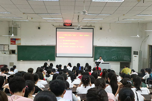 9月15日下午,文学与新闻公司党委副书记周鹏飞于南山六阶为18级新生开展反邪教警示教育宣讲,给新生们上了意义重大的一课。