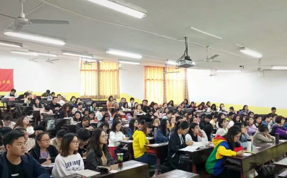 而后陈老师从报告中体现的四个“新”着手,具体讲述了“新时代”、“新使命”、“新思想”和“新征程”的深层含义,展现出近几年中国发生的深刻变化。随后,陈老师再次强调要不忘初心,牢记使命,嘱托大家一定要认真学习贯彻党的十九大精神。在重申报告意义和地位的同时,陈老师提出了三点指示:一是要用新思想武装头脑;二是要迅速掀起学习热潮;三是要按照新部署新要求,全力开展各项工作。授课最后,陈老师以“坚持奋斗,继往开来”为结语,结束了这场精彩的授课,场下传来同学们热烈的掌声。