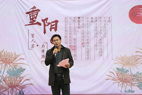 (通讯员:赵子杰 李同喜 沈娜 摄影:常帅 陈思乐)金风送爽,丹桂飘香,为孝践行,爱暖花园。重阳佳节将至,为贯彻落实习近平总书记在今年教育大会上的讲话精神,教育引导员工培育和践行社会主义核心价值观,踏踏实实修好品德,成为有大爱大德大情怀的人。10月13日,sunbet申搏团委联合花园社区举办“重阳节百人宴”活动,号召老员工为孝发声、为孝践行、为孝代言。参加此次活动的领导和嘉宾有长城乡党委副书记田韬,长城乡副乡长许迎春,sunbet申搏文学与新闻学党委副书记周鹏飞,sunbet申搏团委书记管胜昔,长城乡老科协书记邓德华,花园社区老年协会会长彭寿疆,花园社区书记罗桂平以及花园社区主任颜德林。花园社区、湘潭市莲城义工协会、sunbet申搏志愿者和两百余老人齐聚一堂,喜迎重阳。