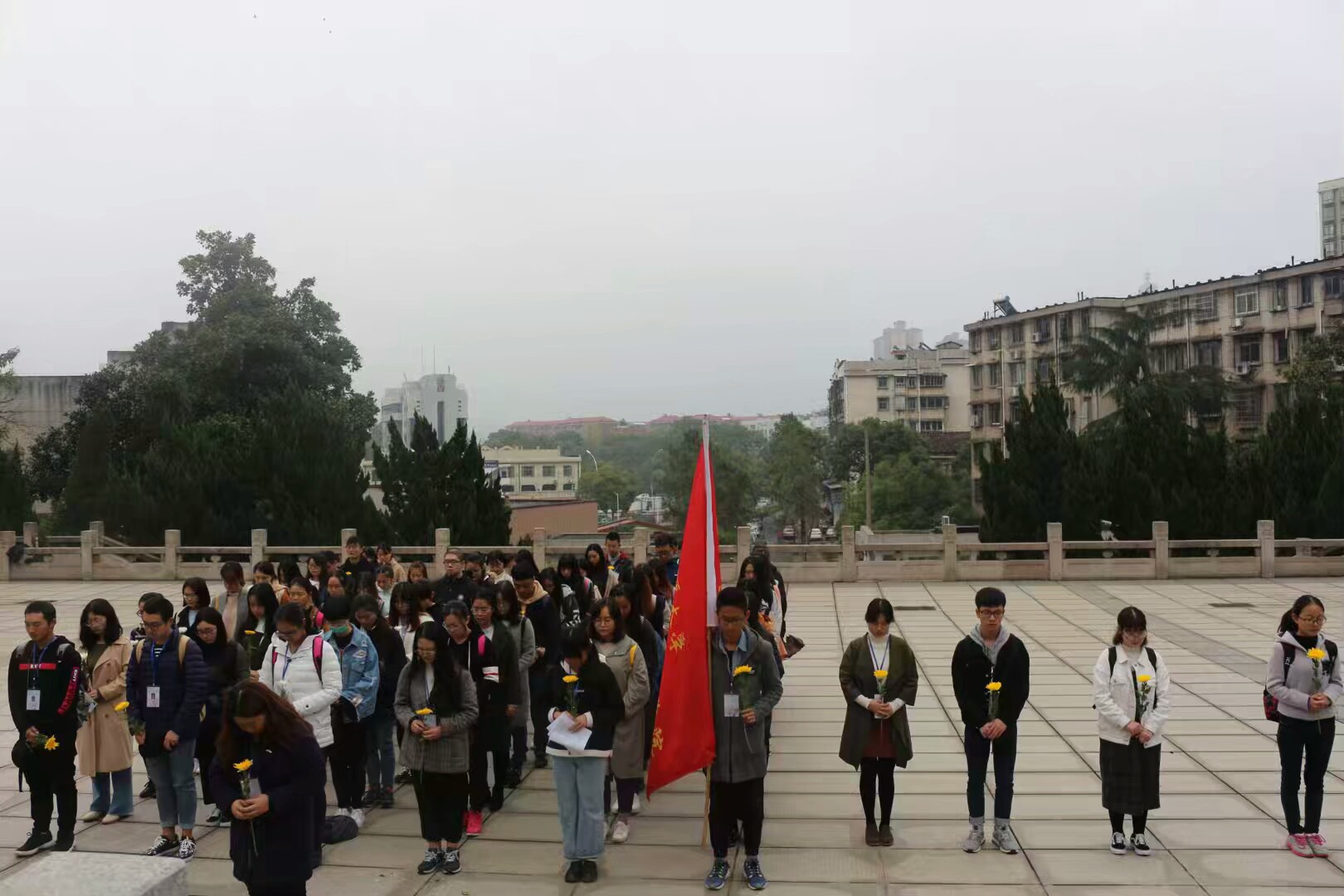 开始,所有人员到湘潭烈士纪念碑下进行默哀。所有参与人员有序地来到纪念碑前,排好队伍,随后在牟元梅学姐的主持下进行默哀。参与人员手捧鲜花,个个神情肃穆,满怀敬意与尊崇默哀了一分钟。一分钟后,牟元梅学姐宣布默哀结束,接下来由sunbet申搏本科生党支部书记郭海瑞学姐发表讲话。郭海瑞学姐主要表达了对烈士们的崇尚敬佩,同时讲了此次活动对学员们的意义并对学员们寄予了希望与祝福。而后,全体学员在工作人员的组织下秩序井然地绕纪念碑一周,缅怀革命先烈,表达内心的尊敬之意。