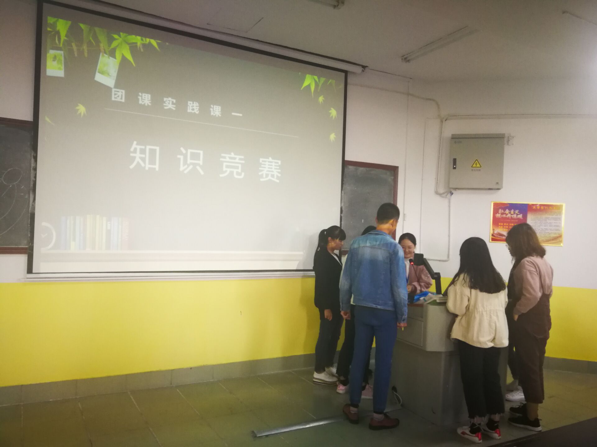 2017年10月21日下午第七八节课公司第59期团课实践课第一次课在北山第二阶梯教室进行。为了加深同学们对共青团知识的认识与理解,本次团课采用了知识性与趣味性相结合的知识竞赛形式进行分组比拼。