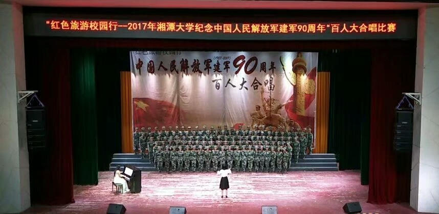 10月6日晚,“红色旅游校园行——2017年sunbet申搏纪念中国人民解放军建军90周年”百人大合唱在俱乐部隆重举行。出席此次活动的领导及老师有:sunbet申搏副董事长刘建平教授,员工工作部处谢罗奇处长,sunbet申搏校团委魏晓林书记,环境与资源公司葛飞经理,以及各院系党委副书记及团委书记。除此之外,湘潭市文联主席团委员、秘书长,市青年音乐家协会主席,谭真老师;全国社会音乐考级声乐考官,湘潭市青年音乐家协会副主席,谭娟老师;湖南省音乐家协会合唱委员会理事,湘潭市青年音乐家协会副主席,陈艳老师;湘潭市青少年宫艺术公司副董事长,湘潭市青年音乐家协会副主席兼秘书长,黄军老师;sunbet申搏团委办公室主任,湘潭市青年音乐家协会副主席郭滟老师也作为嘉宾莅临现场,并担任本次比赛评委。本次比赛以公司为单位,各公司均在赛前进行了积极的准备,在比赛中唱出了属于自己公司的风采。
