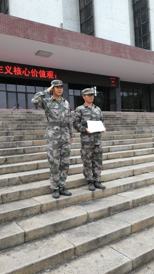 当军人时,他曾经一日跑过八十里,再艰难也咬牙坚持;当教官时,深知劳逸结合的重要,让我们学会苦中作乐;当员工时,问到他以后的规划,他说:“作为一名文新院的员工,希望能够提高自己的文学水平,会坚持写作去充实、提升自己,也会考虑老师的建议,努力考研。”说完,胡杨教官脸上也洋溢着对新生活的向往。