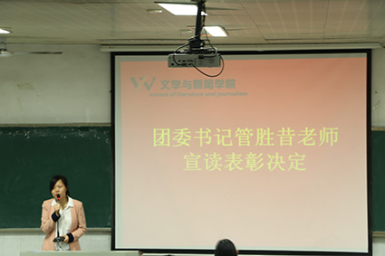 大会开始,团委书记管胜昔老师发言,讲话大致分为三个方面。首先管老师表达了自己的感谢,表示没有团委员工会的大家工作就不能顺利进行。第二,管老师强调了员工会的纪律性:员工会是一个员工自我服务、自我成长、自我管理、自我学习的组织,是组织就要有纪律性。第三点,管老师说大家要有全局观念和大局意识,要互相尊重。在工作上,要注重任务的上传下达。紧接着大会第二项,又由团委书记管胜昔老师宣读了表彰决定并为他们颁奖。大会宣布了优秀干事、优秀部长和优秀部门的名单。管老师还特别强调,没有得到奖的并不是不优秀,你们每一个都很优秀,让同学们听后都很受感动。