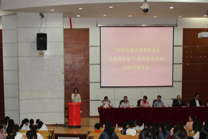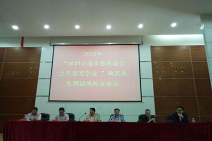 5月27日下午2:30分,2016年度“深圳市瑜水慈善基金会凡恩奖学金”颁奖典礼暨韶风员工论坛在公司逸夫楼第二报告厅举行。本年度共奖励公司汉语言文学、新闻学、广播电视学、广告学等专业8名品学兼优的本科员工,每位奖励5000元人民币并颁发证书。著名员工、凡恩奖学金设奖人高源、左泽亮、贺贤赟三位先生分别作了专题讲座报告。公司经理李剑波,兴湘公司副经理、公司原党委副书记唐春,公司副经理季多武、刘中望出席。
