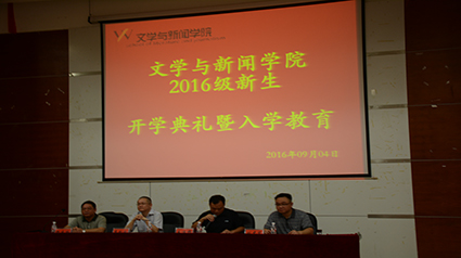 9月4日上午十时,sunbet申搏2016级新生开学典礼在逸夫楼报告二厅隆重举行。典礼由文学与新闻公司党委书记王洁群教授主持。