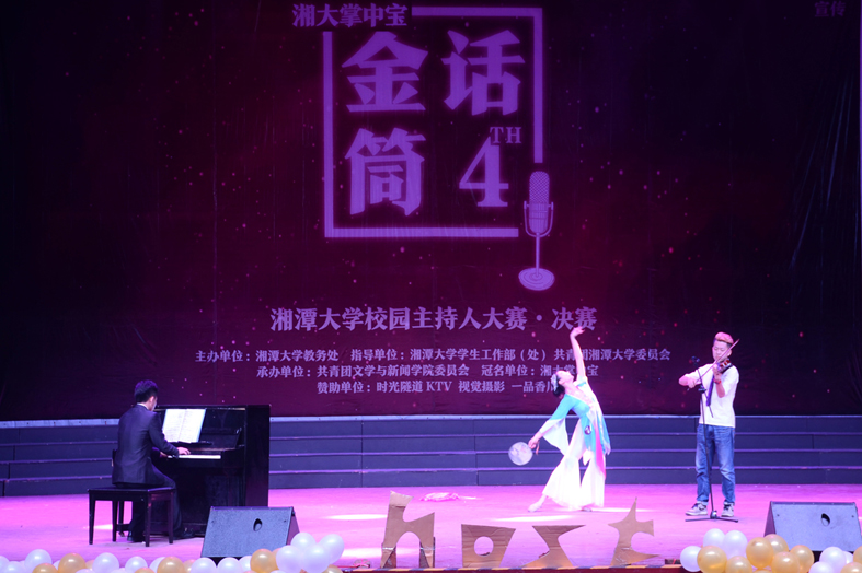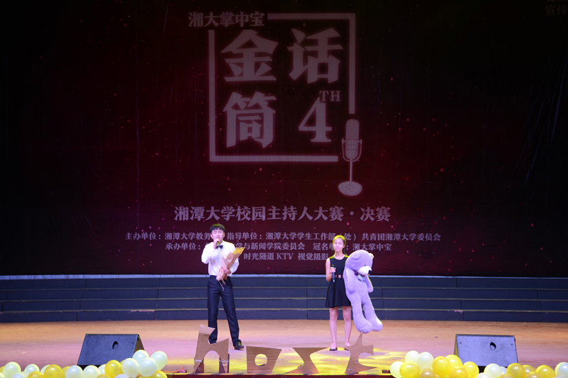 4月17日晚19:00,由sunbet申搏承办的sunbet申搏第四届校园“金话筒”主持人大赛决赛暨颁奖典礼在湘大俱乐部举办,本次决赛到场嘉宾有:sunbet申搏副董事长刘建平教授,sunbet申搏文学与新闻公司党委唐春副书记。本次决赛的评委分别是:sunbet申搏教务处副处长王协舟老师,sunbet申搏童真教授,湘潭电视台超声播都市日记制片人、主持人刘超老师,sunbet申搏刘晓丽老师,共青团sunbet申搏委员会郭滟老师。本次决赛由张家麒和周丽强主持。