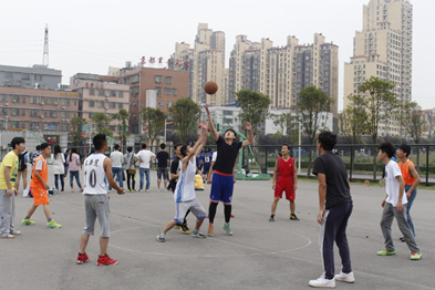4月12日中午12:30,“文新杯”男子篮球赛小组赛在东门进行,12中文与14广电实力不相上下,最后在两个精彩的加时赛后,12中文以44:43一分的优势胜14广电。