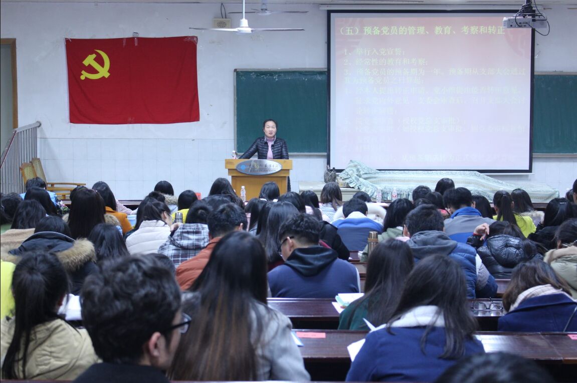 3月12日晚,sunbet申搏第91期入党积极分子培训班开学典礼暨第一次授课在经管楼正式召开。此次授课由sunbet申搏、旅游管理公司和公共管理公司三院联合组织,参与授课的老师有公共管理公司党委副书记刘纯老师、sunbet申搏团委书记管胜昔老师、旅游管理公司入党培训班班主任陈敏老师,刘纯老师担任此次授课的主讲人。课上,刘老师主要向同学们介绍了入党的要求和程序,传授了入党的相关知识。