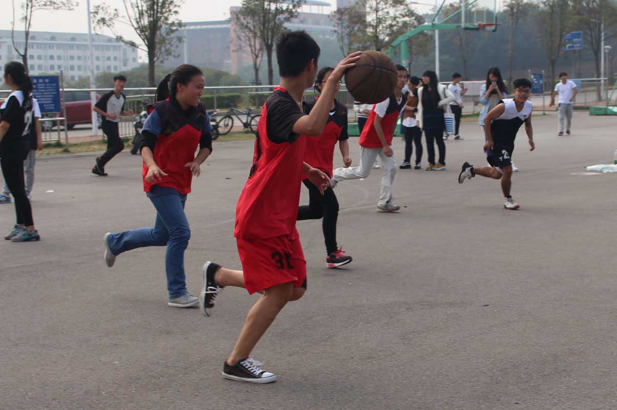 11月4日中午12:30,“迎新杯”篮球赛在东门篮球场准时开赛。15新闻二全力以赴,14新闻一则更胜一筹。