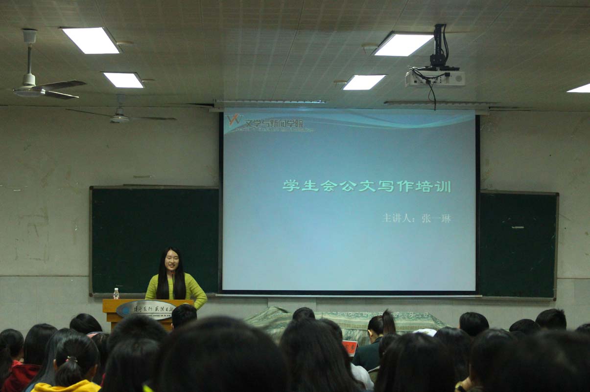大会主要由三部分组成,由洪晓婷向新一届干部、干事传授经验,由张一琳进行公文写作方法培训,以及白露对大会进行总结。经过这次培训,到场的参训人员都收获颇丰,受益匪浅。