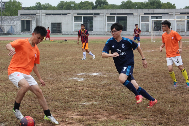 赛场上双方队员迅速进入状态,精湛的脚法、完美的盘带、犀利的射门以及精彩的配合博得场下观众的阵阵掌声。尽管面对的是理工科院系的众多劲旅,队员们凭借出色的防守、细腻的脚法与巧妙的配合,顽强应战着。队长刘潇宇担任前锋,率领中场巩辉、吴彦昊、宋晋海,后卫何晓军、柳王敏,守门员陈一言,替补李鑫澄等众成员,无视全身的汗水,提振信心,毫不松懈,竭尽全力“战斗”到最后一刻。面对比分落后的不利战况,队员们加强防守,一度使对方难以攻破防线。在中场和后卫的默契配合下,队长刘潇雨多次突破防线,破门得分。第一场比赛取得了4:6的突破性成绩。