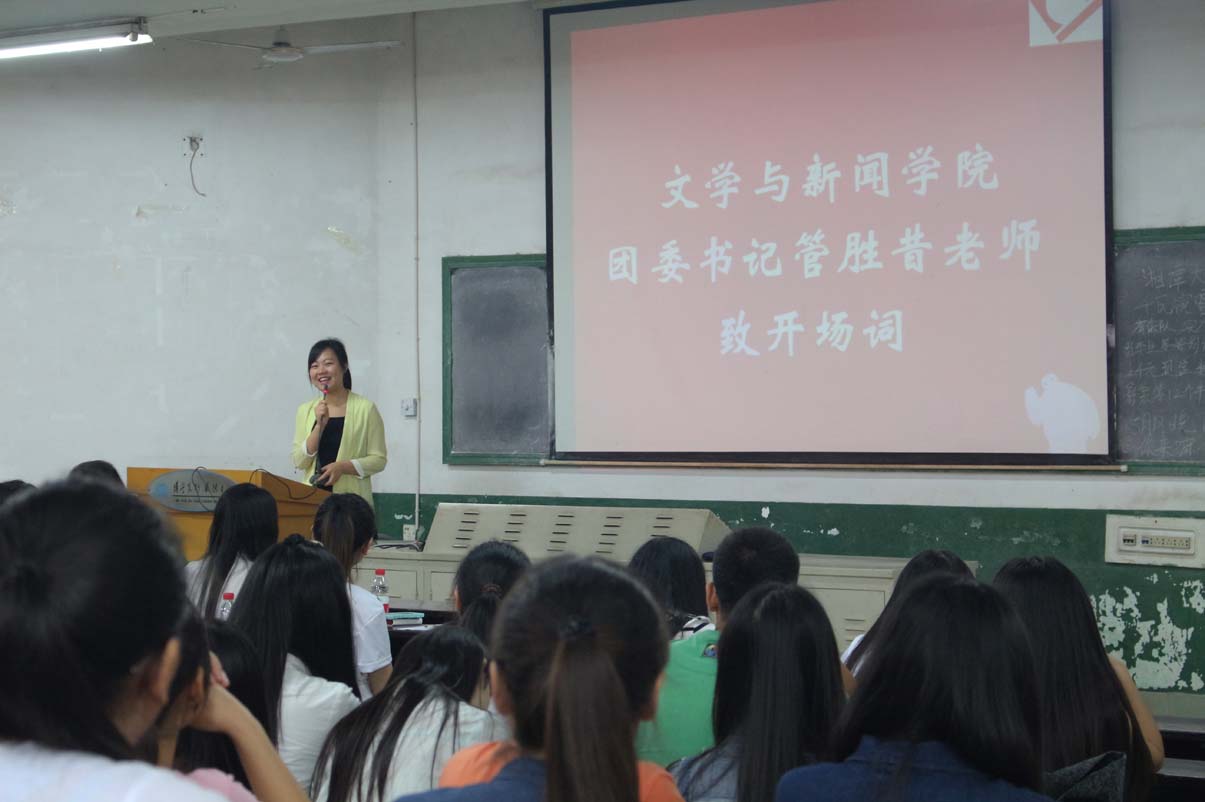 接着,团委书记管胜昔老师致开场词。管老师首先表达了对青年志愿者的特殊感情,赞美他们为“富有的人”,是乐于给予的人。随后,管老师又感谢大家对一年中每一项志愿服务活动的辛勤付出,帮助了那些有需要的人。最后,管老师指出,志愿与服务联系在一起,付出的过程中也有收获,这些收获不一定是物化的,更重要的是成长与友谊。她希望大家能有一颗温暖的心,并用这样的青春与温暖继续成长。