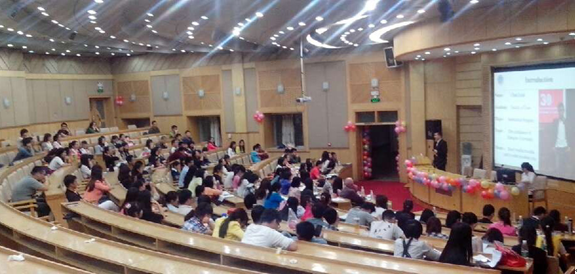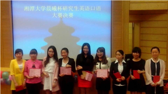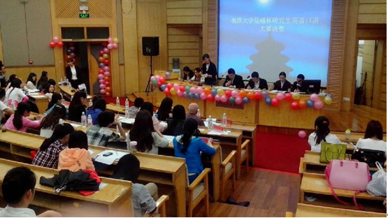 在9日晚上的决赛中我们邀请到王思思老师,肖亮老师以及外教David担任专业评委,并请到嘉宾:外国语公司蒋欣欣副经理,思政干事唐聪老师。同时各院系研究生会干部纷纷到场为自己院的选手加油助威!