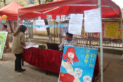 权益保障部成员一早就开始紧锣密鼓地做起了宣传准备,在五颜六色的卡片上写下关于节约的百科知识,并精心准备小礼品。学雷锋的活动主题有着极大的感染力和影响力,过往的同学们纷纷驻足,参与到活动中来,并在答题的过程中收获了知识和喜悦。