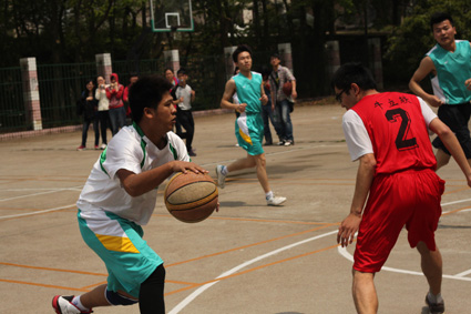 下半场易边再战,09中文三分线外开张,瞬时投进五记三分球,打出一波15:0的高潮,11广电刘羿飞联手朱瑞奋力追分,在不断的快攻中缩小分差。队长王登学祭出一记高难度勾手,三节结束,比分定格在55:30。