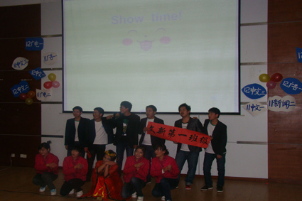 11广告1班秉承“青春没有失败,只要亮出风采”的主旨,从学风建设、组织建设、寝室建设、班级活动、获奖情况等方面展示了自己的班级文化。 11广电2班在PPT中首先介绍自己班级的口号、班徽、班服、班赋以及自己填词创作的班歌,随后,从班级文化建设、专业知识建设、特色文化建设、基础制度建设、课外活动等方面全方位地展示了自己班级的特色。最后,在Show Time中,他们的集体舞《江南Style》和《贵妃醉酒》将现场气氛推向高潮,赢得全场好评。“青春无畏,逐梦扬威”,伴随着响亮的口号,11广电1班开始展示自己的班级,由员工填词创作的班歌《恒久传唱》唱出了他们心声,设计新颖的班服表现了广电专业的特色,班级主题“执笔笑风尘”彰显了他们的青春豪情,在班级建设之外,他们还展示了班级获得的各种荣誉,包括百佳团支部、班服设计大赛冠军、红歌会第一名等,表现了班级的强大实力。