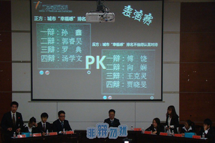 表演赛辩题为“城市幸福感排名值不值得认真对待”,来自公司辩论队的8位11级辩手依次登台,为大家呈现了一场精彩绝伦的比赛。正方所持观点为“城市幸福感排名值得认真对待”,开篇立论环节,正方一辩运用富有诗意的话语娓娓道来,并以全国典型城市为例,举出大量数据进行论证。反方一辩则从“调查机构不规范,调查方法不科学,调查样本不合理”三个破题论证“城市幸福感排名不值得认真对待”。在自由辩论环节,双方辩手唇枪舌剑,交替发言,将比赛推向高潮,双方在“幸福感”与“幸福感排名”的区别、调查数据的来源与科学性方面展开激烈辩论,惊人的语速、犀利的言辞使得现场掌声连连爆发。