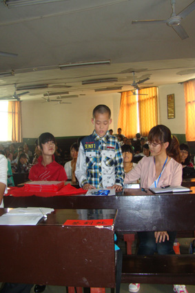 大会开始,在肃静的氛围中,会场奏响了《青年志愿者之歌》。紧接着唐书记致辞,“我们老员工虽然是在校生,时间相对较紧,但我们能在学习生活之余,做一些力所能及的善事,是具有很大意义的。当我们的行为带动身边的人和社会上的人进行志愿活动时,这就不仅是奉献精神的体现,因为在奉献的同时,我们也丰富了人生,为老员工活画上了鲜艳的一笔!”我们公司有如此庞大的志愿团体,唐书记感到非常欣喜,他希望各位志愿者能认真践行青年志愿活动的精神,努力为社会做贡献。随后,公司团委员工会青志部部长胡琰文介绍了四项青年志愿者常规活动——“爱心护书”、“爱心血库”、“寝室绿色行动”和“朝阳红”义务支教活动,并呼吁大家积极参与到活动中来。接着,来自青亭小学的小朋友进行了发言,其真挚的感情打动了现场每一位参会者的心,同时也坚定了各位青年志愿者为社会服务的决心。