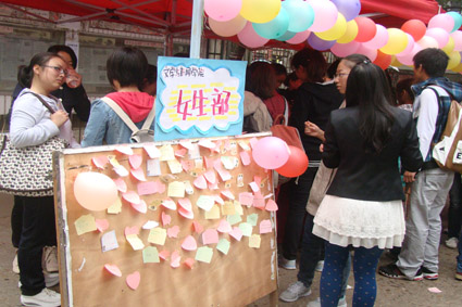 “美丽女生”活动虽然主要是面向女生开展的,但在摆点现场也不乏驻足的男生。女生部工作人员说,“听到这个活动名称,大家可能觉得这是为女生办的活动,其实‘爱青春、爱漂亮、爱美丽’的主题适合每一位老员工。”为此,女生部专门设计了“写心愿”的环节,男生女生都可以在贴纸上写下自己的心愿,希冀美好未来。