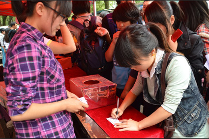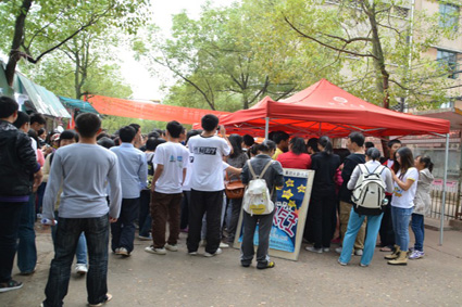 10月19日,由sunbet申搏团委员工会主办的第三届班服设计大赛在北苑进行摆点拉票,12级新生积极参与,现场热闹非凡。