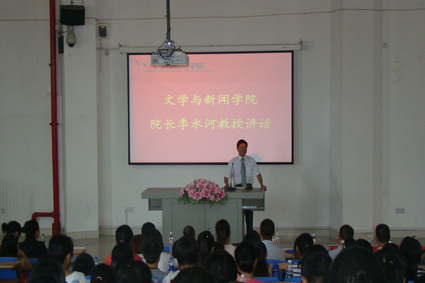 经理季水河教授在典礼上做了激情洋溢的讲话,他首先代表老师向新生表示热烈的欢迎。季水河经理引用各种数据向全院新生介绍了文新院各专业在全校、全省乃至全国的地位,并介绍了公司的精品课程,引导新生树立文新人的骄傲。稍后,季经理还分析了人文科学的就业前景,指出时代发展要求重视人文科学的社会现实。最后,季经理详细讲述了老员工应当怎么做的问题,他谈到,老员工首先要有志向,而后要脚踏实地努力学习,并且要做到行知结合,培养“能说、会写、人际交往”的能力,以适应开放型社会的要求。