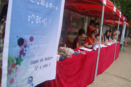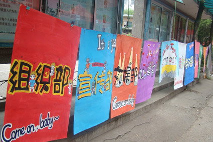 公司团委员工会有组织部、宣传部、青年志愿者实践部、文心报等14个部门,各部门职责不同、特点相异,可谓是各有千秋。北苑主干道上挂着由广告部手绘的14张海报,五颜六色的海报包容了每个部门的特色,吸引着往来的路人驻足欣赏。新生陆续到公司团委员工会招新摆点处咨询领表,团委员工会成员认真耐心地向前来咨询的新生介绍各部门情况。中午,北苑迎来人员流动的高峰期,到公司团委员工会摆点招新处咨询的新生人数也急剧增长。相对于9日而言,10日前来交表的同学居多,广大新生的表现积极、有礼貌,参与热情很高。