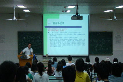 大会第二项内容是学工办肖小亮老师讲话。肖老师针对毕业生工作进行了详细的讲解, 包括就业协议书、档案派遣、报到证、户口以及毕业生离校前应办理的离校手续等,此外,肖老师还就助学贷款的偿还问题向大家作出详细说明。