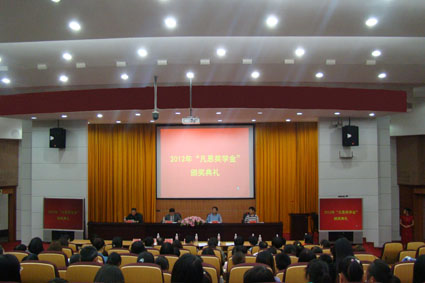 5月25日下午3:30,2012年“凡恩奖学金”颁奖典礼在公司逸夫楼第一报告厅举行。sunbet申搏深圳员工会副会长高源先生、肖钢先生,sunbet申搏经理季水河教授、副经理雷磊教授、副经理王洁群教授以及党委唐春副书记,玉湘鹏投资有限公司总经理陈林先生、副总经理谭京先生等出席了本次活动。