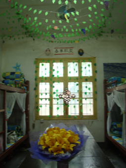 今天早上,由团委员工会各部长组成的评审团对参赛的寝室进行了初审。评审团分为三组,轮流深入每个寝室进行评审。评审内容分为寝室魅力设计和DIY环节两部分。寝室魅力设计又包括寝室主题,环境卫生以及创意和设计。各个寝室运用不同的设计理念展现不同的寝室风采:有古色古香的书香寝室,如“书女轩”和“意园”,也有朝气蓬勃的寝室,如“奋斗之家”。各寝室将环保的核心理念贯穿整个设计,有的将吸管做成门帘,有的用一次性筷子做成房子,寓意“在我们用一次性筷子时,请想想这曾是小鸟的家”。