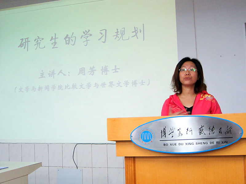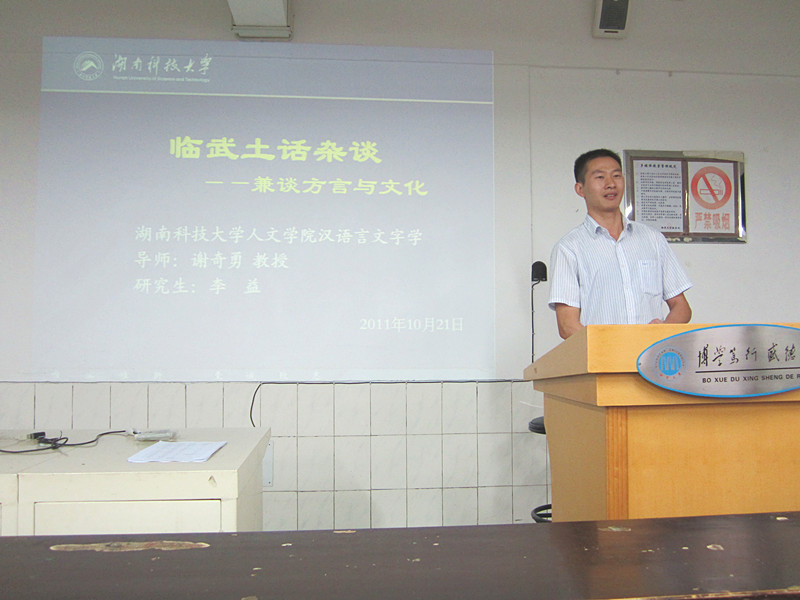 论坛围绕研究生的学习规划、临武土话与方言文化、消费时代理论研究的困境与思考三个主题先后展开进行。首先,公司比较文学博士研究生周芳以自己的亲身经历简练而精辟地向大家介绍了研究生生活应如何合理规划,比如,学习目标必须十分明确,学习过程中选准一个方向坚持不懈地努力,在人生的道路上应懂得取舍等,建议中肯、切合实际。接下来,湖南科技大学人文公司汉语言文字学2009级的研究生李益以他的学术论文为载体,向大家简单介绍了湖南临武方言的相关情况,展现了他的学术研究能力,也让新一届的研究生们有所启发。最后,公司2010级文艺学专业研究生王园波以一篇诙谐而深刻的论文浅谈了消费时代理论研究的困境,并指出在理论的研究视域中应如何处理好责任、传承、创新之间的关系,见解独到深刻,大家心领神会,论坛现场气氛活跃。