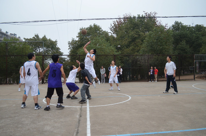 面对这一落后的局面,研究生们亦不甘示弱,2011级研究生石志敏和2010级研究生唐涛敏锐观局,把握进球时机,先后都进了2分球,使赛局首次持平。在接下来的比赛中,双方相互追击、高度戒备、伺机投球,先后三次打成平局,现场气氛好不热烈。然而研究生们组成的队伍尚在磨合期间,协作、默契等方面稍逊于刚刚经过多场比赛的老师队,最终以43比44输给了老师队。诚然,输赢并不重要,重要的是师生们借打球之机,很好地交流了感情,拉近了彼此之间的距离。