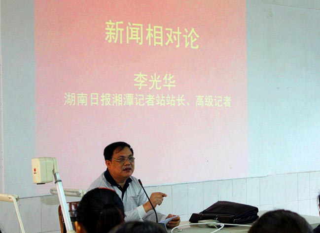 10月14日上午10:00,湖南日报湘潭记者站站长,高级记者李光华先生莅临公司讲学,讲座在法附楼101举行,王洁群副经理,何纯教授及公司部分本科生、研究生聆听了讲座。