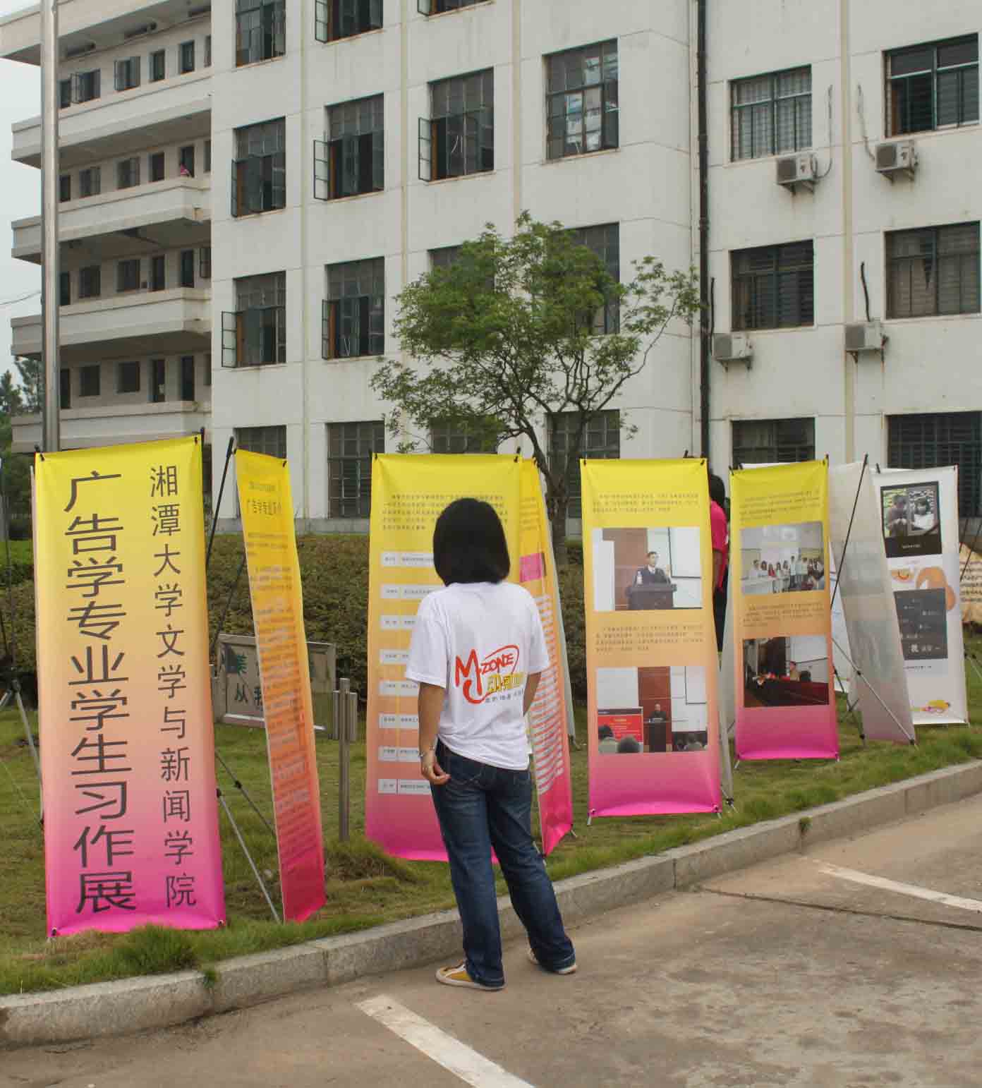 在本届新生到来之际,公司广告系于9月1日下午在三教前的草坪上举办了为期四天的员工广告作品露天展,并将于5日转展南苑,主要介绍广告专业发展的相关情况和员工作品。