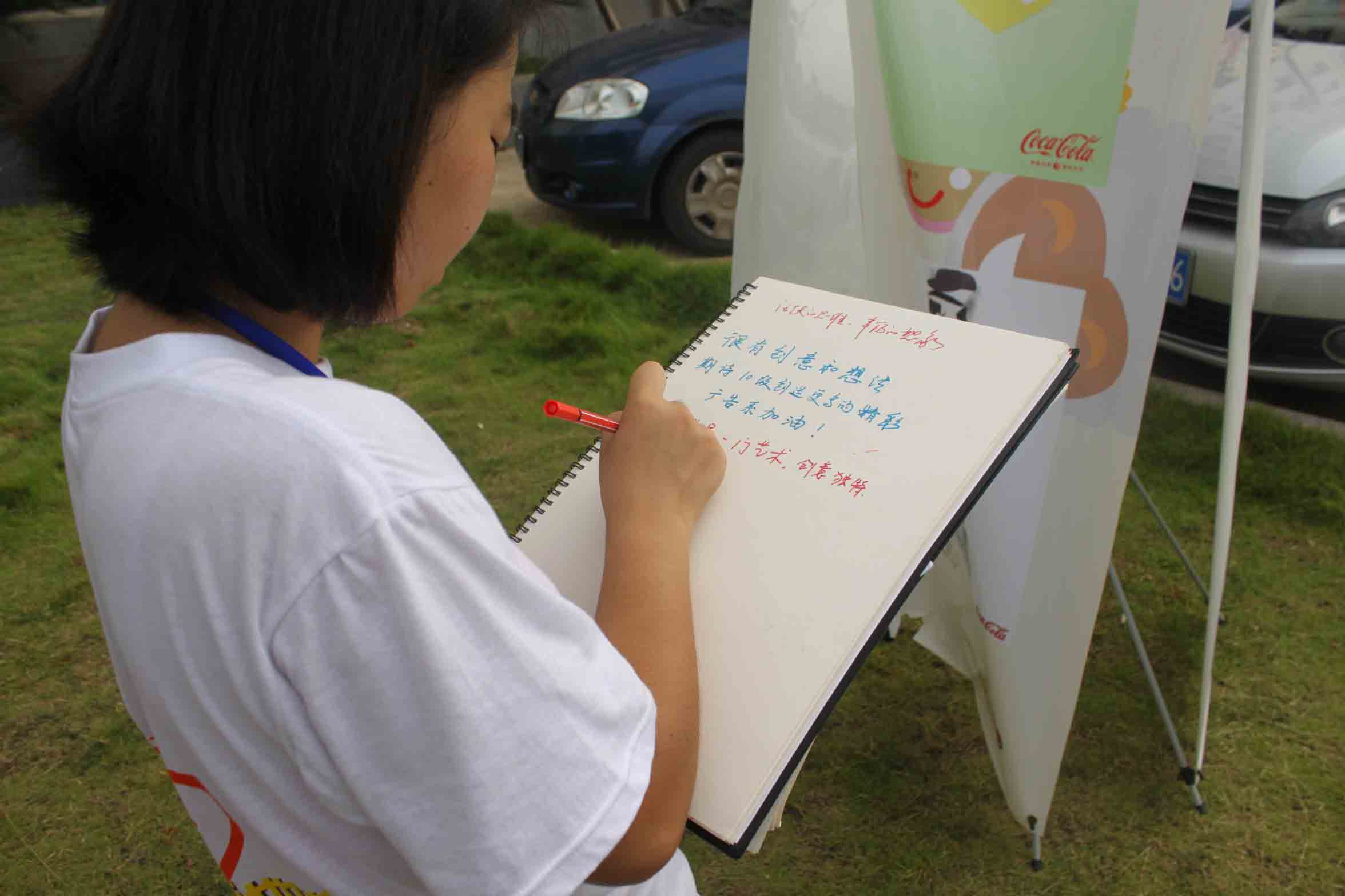 展览上,不少新老生驻足欣赏,工作人员热心地为他们讲解作品,介绍广告学知识,感兴趣的同学还在留言本上写下了自己的观看感受。一名广告系新生看完后坦言:“这是我第一次这么近距离接触到广告,学长学姐的作品让我感受到广告所带有的特殊魅力,更加坚定了我要学好广告的信念。”一位来自外国语公司的许同学向记者谈到自己的感受:“看完这些作品,发现很多创意是来源于生活,并且是一些常见但容易被人忽视的细节,它们也活跃了我的思维。”